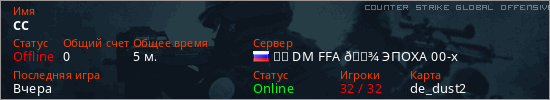 Играет на Counter Strike Global Offensive сервере. Страна: РоссияПервый раз замечен 13:31 04.03.2026