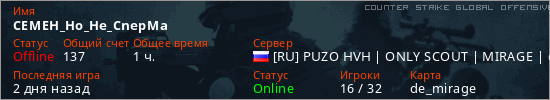Играет на Counter Strike Global Offensive сервере. Страна: РоссияПервый раз замечен 10:06 26.03.2026