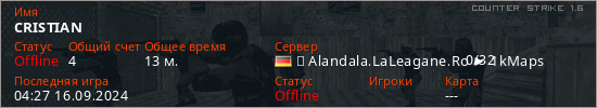Играет на Counter Strike 1.6 сервере. Страна: ГерманияПервый раз замечен 02:53 05.06.2024