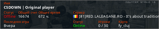 Играет на Counter Strike 1.6 сервере. Страна: РумынияПервый раз замечен 20:11 17.05.2022