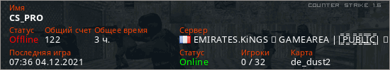 Играет на Counter Strike 1.6 сервере. Страна: ФранцияПервый раз замечен 11:03 03.12.2021