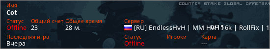 Играет на Counter Strike Global Offensive сервере. Страна: РоссияПервый раз замечен 15:22 26.11.2025