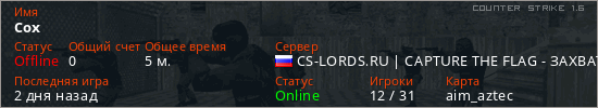 Последний раз был в сети Вчера Игрок с таким ником замечен на 9 серверах