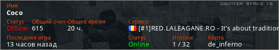 Играет на Counter Strike 1.6 сервере. Страна: РумынияПервый раз замечен 22:21 09.05.2022
