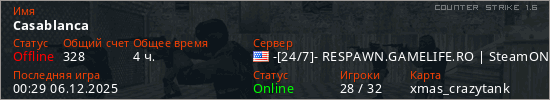 Играет на Counter Strike 1.6 сервере. Страна: СШАПервый раз замечен 05:29 03.10.2025