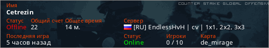 Играет на Counter Strike Global Offensive сервере. Страна: РоссияПервый раз замечен 20:54 05.12.2025