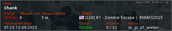 Последний раз был в сети 07:23 12.09.2025 Игрок с таким ником замечен на 3 серверах