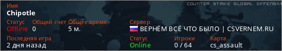 Играет на Counter Strike Global Offensive сервере. Страна: РоссияПервый раз замечен 16:31 10.03.2026