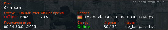 Последний раз был в сети 00:24 30.04.2025 Игрок с таким ником замечен на 18 серверах