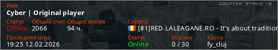 Играет на Counter Strike 1.6 сервере. Страна: РумынияПервый раз замечен 17:20 07.05.2022