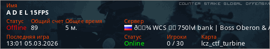 Играет на Counter Strike Global Offensive сервере. Страна: РоссияПервый раз замечен 12:48 05.03.2026