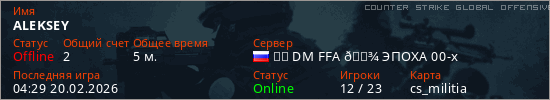 Играет на Counter Strike Global Offensive сервере. Страна: РоссияПервый раз замечен 04:21 20.02.2026