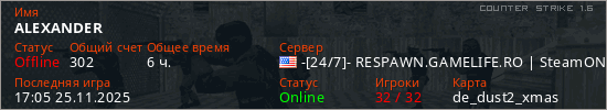 Играет на Counter Strike 1.6 сервере. Страна: СШАПервый раз замечен 17:33 21.02.2025