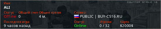 Играет на Counter Strike 1.6 сервере. Страна: РоссияПервый раз замечен 19:26 28.03.2026
