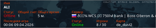 Играет на Counter Strike Global Offensive сервере. Страна: РоссияПервый раз замечен 00:04 09.04.2026