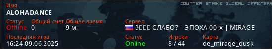 Играет на Counter Strike Global Offensive сервере. Страна: РоссияПервый раз замечен 15:21 12.02.2025