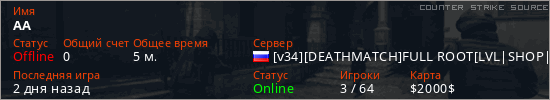 Играет на Counter Strike Source сервере. Страна: РоссияПервый раз замечен 09:45 25.03.2026