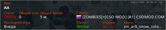 Последний раз был в сети Вчера Игрок с таким ником замечен на 37 серверах