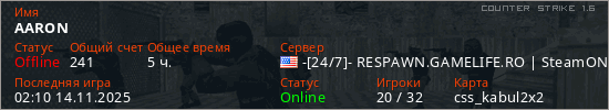 Играет на Counter Strike 1.6 сервере. Страна: СШАПервый раз замечен 03:38 04.03.2025