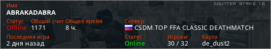 Последний раз был в сети 2 дня назад Игрок с таким ником замечен на 3 серверах