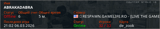 Играет на Counter Strike 1.6 сервере. Страна: СШАПервый раз замечен 20:53 06.03.2026