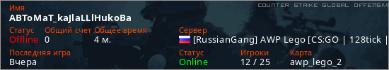Играет на Counter Strike Global Offensive сервере. Страна: РоссияПервый раз замечен 21:58 26.03.2026