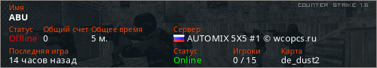 Играет на Counter Strike 1.6 сервере. Страна: РоссияПервый раз замечен 11:55 26.03.2026
