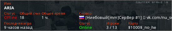Последний раз был в сети 8 часов назад Игрок с таким ником замечен на 6 серверах