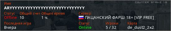 Последний раз был в сети Вчера Игрок с таким ником замечен на 12 серверах