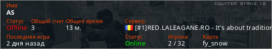 Играет на Counter Strike 1.6 сервере. Страна: РумынияПервый раз замечен 15:30 04.04.2023