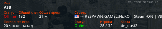 Играет на Counter Strike 1.6 сервере. Страна: СШАПервый раз замечен 10:43 03.02.2026