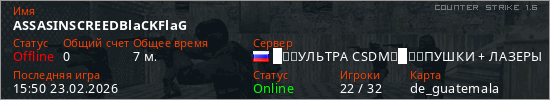 Играет на Counter Strike 1.6 сервере. Страна: РоссияПервый раз замечен 23:13 04.02.2026