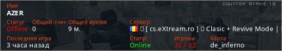Играет на Counter Strike 1.6 сервере. Страна: РумынияПервый раз замечен 21:41 08.01.2026