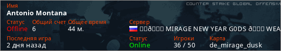Играет на Counter Strike Global Offensive сервере. Страна: РоссияПервый раз замечен 01:41 02.02.2025