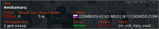 Последний раз был в сети 2 дня назад Игрок с таким ником замечен на 6 серверах