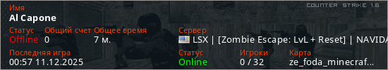 Играет на Counter Strike 1.6 сервере. Страна: СШАПервый раз замечен 00:48 11.12.2025