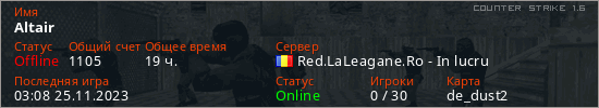 Играет на Counter Strike 1.6 сервере. Страна: РумынияПервый раз замечен 19:39 11.07.2022