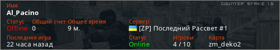 Играет на Counter Strike 1.6 сервере. Страна: УкраинаПервый раз замечен 21:48 17.03.2026