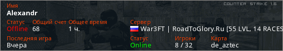 Последний раз был в сети Вчера Игрок с таким ником замечен на 26 серверах