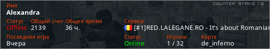 Играет на Counter Strike 1.6 сервере. Страна: РумынияПервый раз замечен 21:01 11.05.2022