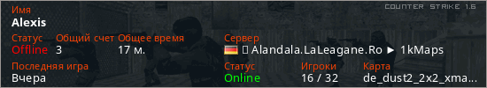 Последний раз был в сети Вчера Игрок с таким ником замечен на 20 серверах