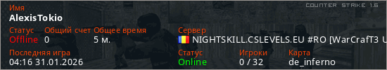 Играет на Counter Strike 1.6 сервере. Страна: РумынияПервый раз замечен 04:10 31.01.2026