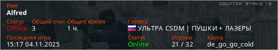 Последний раз был в сети 15:17 04.11.2025 Игрок с таким ником замечен на 21 сервере