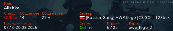 Играет на Counter Strike Global Offensive сервере. Страна: РоссияПервый раз замечен 02:51 17.03.2026
