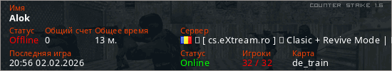 Играет на Counter Strike 1.6 сервере. Страна: РумынияПервый раз замечен 21:23 24.01.2026