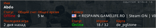 Играет на Counter Strike 1.6 сервере. Страна: СШАПервый раз замечен 16:22 21.01.2026