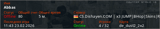 Играет на Counter Strike 1.6 сервере. Страна: ГерманияПервый раз замечен 11:41 23.02.2026