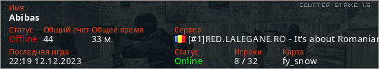 Играет на Counter Strike 1.6 сервере. Страна: РумынияПервый раз замечен 16:24 07.03.2023