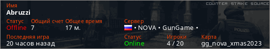 Играет на Counter Strike Source сервере. Страна: РоссияПервый раз замечен 14:19 25.11.2025