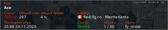 Играет на Counter Strike 1.6 сервере. Страна: РумынияПервый раз замечен 17:54 02.09.2022